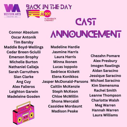 “Back in the Day: A 90s Flashback Cabaret” is a celebration of all things 90s with a twist for luck. It will feature all the songs we remember and love about the 1990s and invite the audience to vote for their favourite. Songs such as Spice Up Your Life, Baby One More Time, Mmm Bop, Genie in a Bottle, Vogue, Step Back in Time and many more. Solos, duets, small ensembles and whole cast numbers will be featured. It promises to be nothing but a good time! Pack a picnic basket and book your table now.